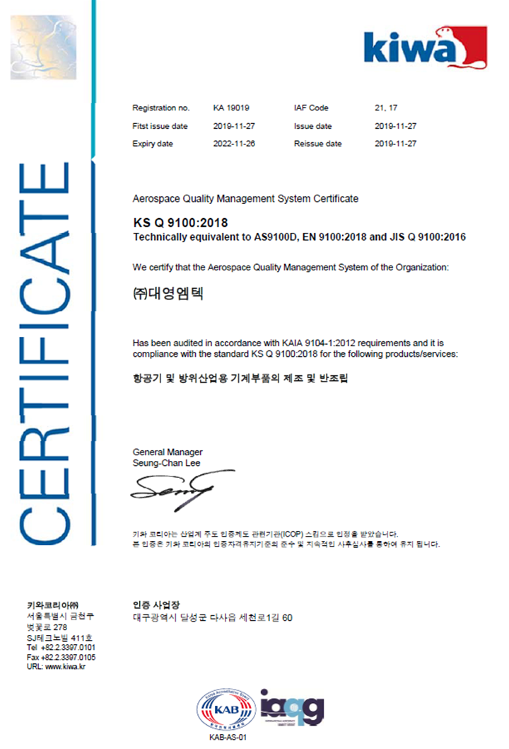 (주)대영엠텍 인증현황